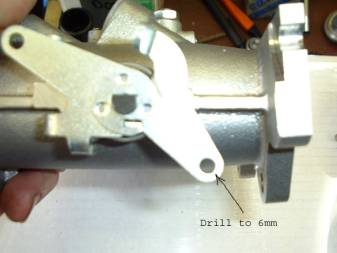 The linkage drop arm needs to be drilled to 6mm and the hole deburred in order to allow
