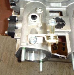 epoxy could be used. Note that the redundant end of the throttle shaft is removed to make